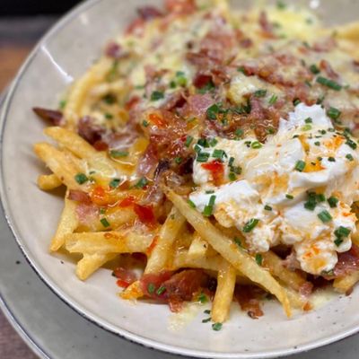 Crispy bacon, melted cheese, sour cream, sweet chilli & chives