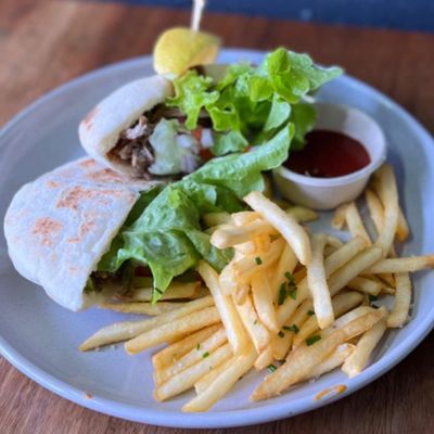 House baked pita, tzatziki, onion, cucumber, green oak lettuce, tomatoes & a side of fries