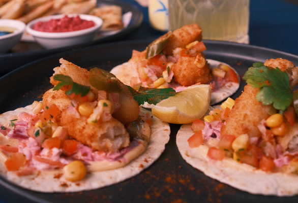 3 soft tortillas with slaw, corn salsa & sriracha mayo