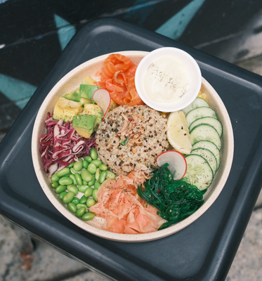 Rice, edamame, seaweed, corn, smashed avo, pickled ginger, cucumber & a wasabi mayo. With a choice of meat: Chicken Beef Salmon Halloumi